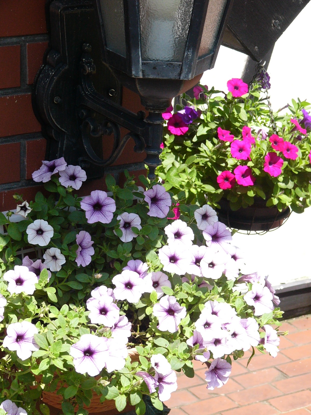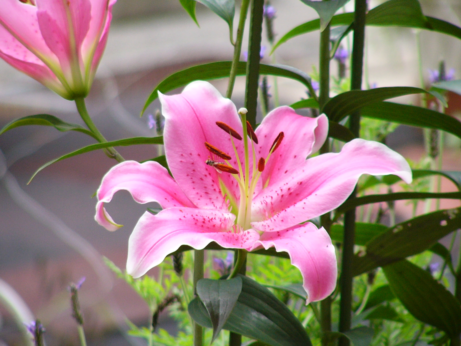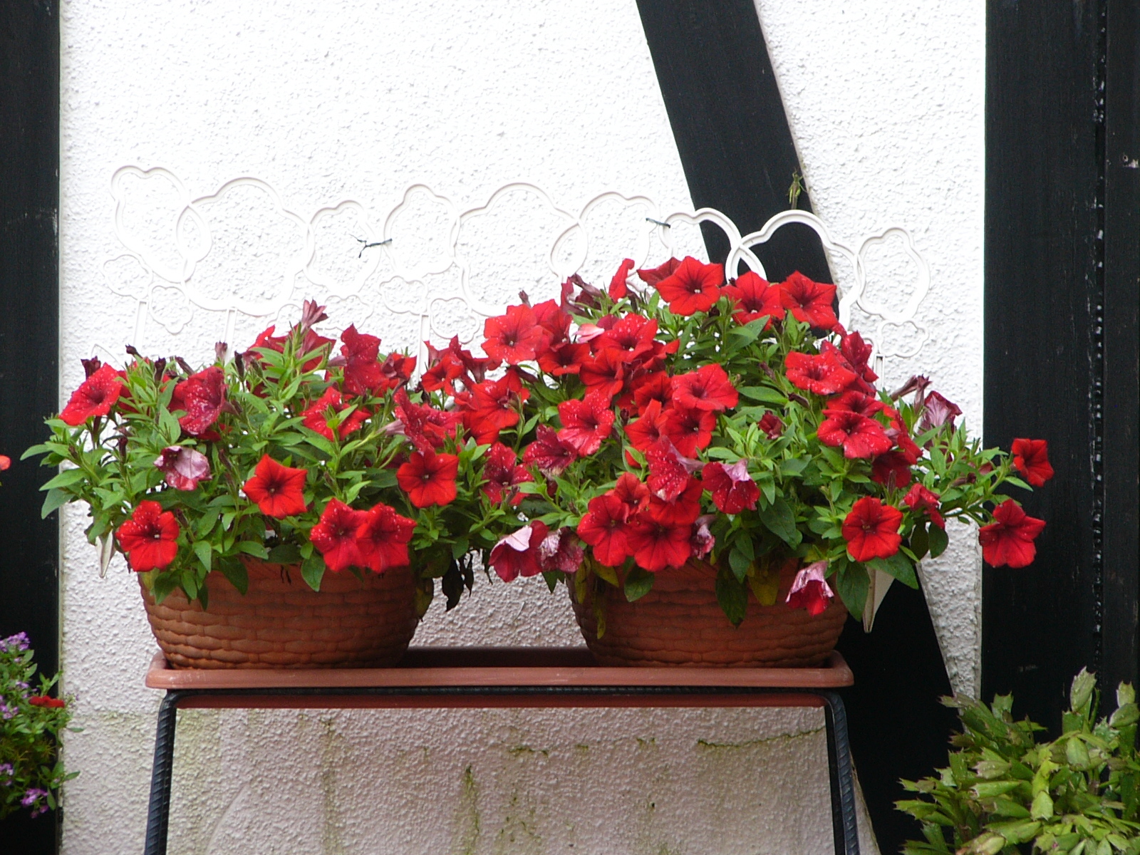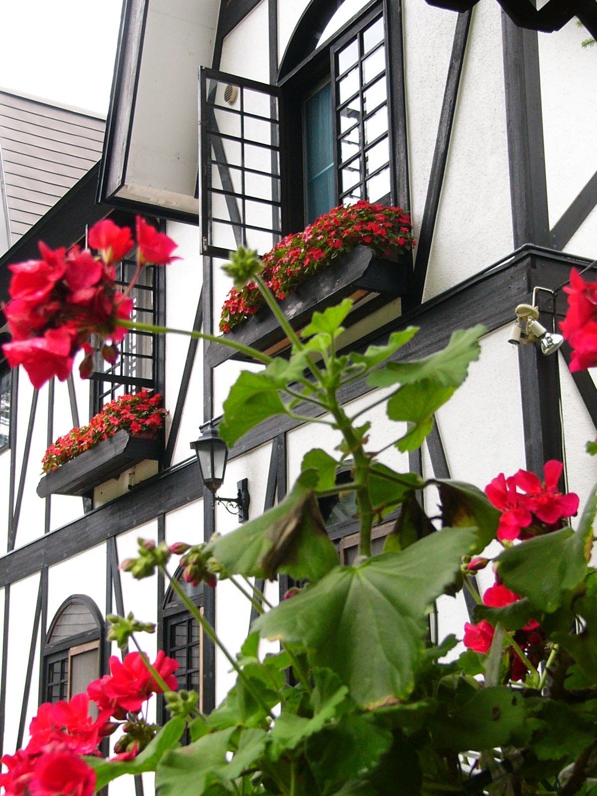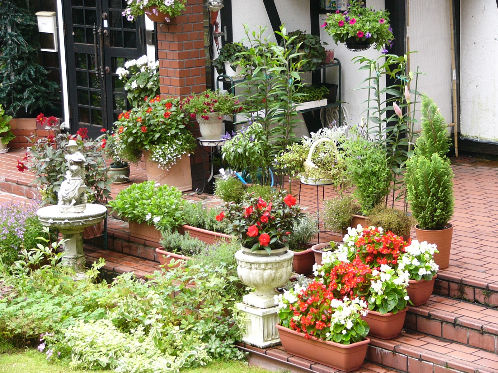 ソルボンヌ(ゆり) 左-八重インパチェンス 奥-ゼラニウム
