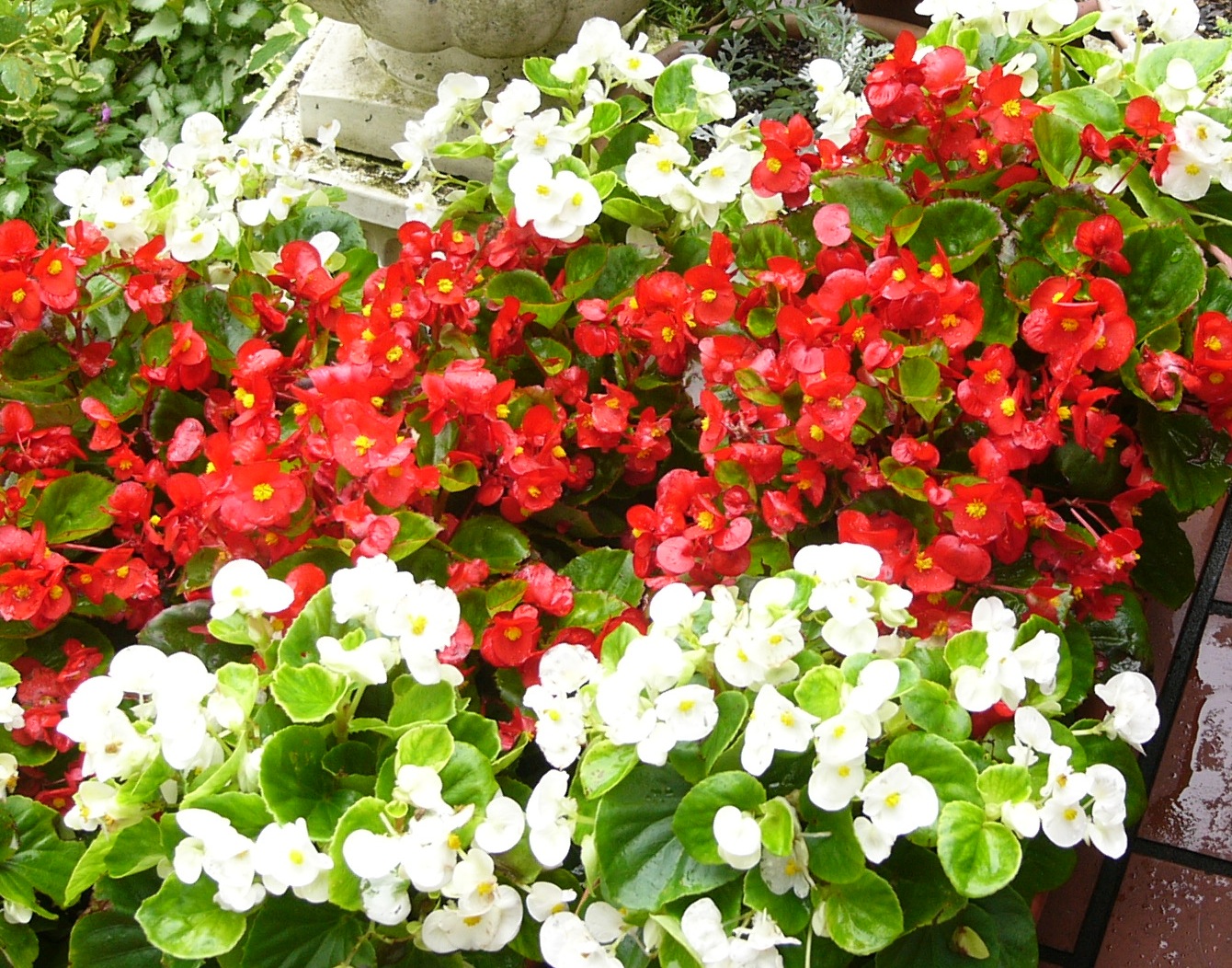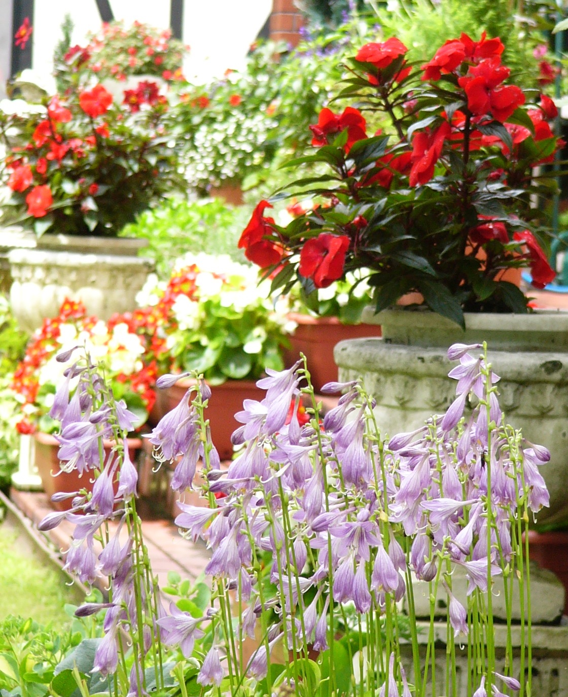 手前-ホスタ 奥-ニューギニアインパチェンス ゼラニウム白